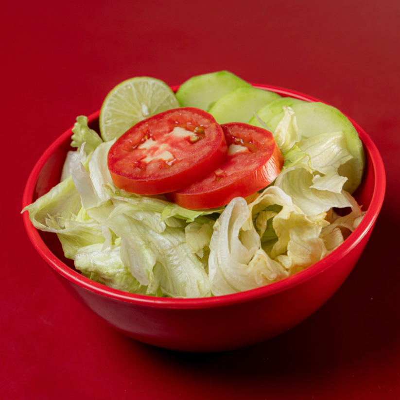 Ensalada de lechuga (porción 1/4), pepino, tomate, limón y aderezo ranch