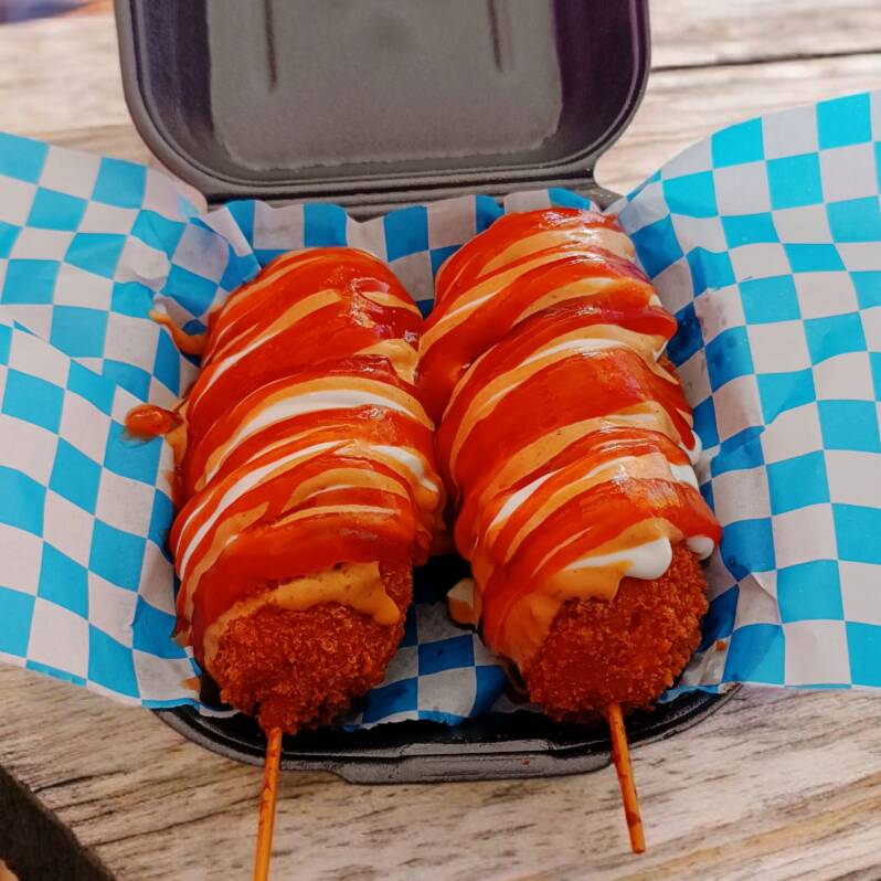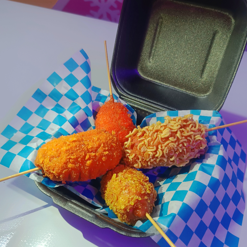 El combo perfecto para el antojo rápido o para compartir. Son 4 mini banderillas rellenas de salchicha, cada una con una cubierta distinta: natural, queso, Flamin’ Hot y ramen. Llévalas con tus aderezos favoritos y arma un lunch poderoso, variado y lleno de sabor. ¡Chiquitas, crujientes y adictivas! 😎🔥