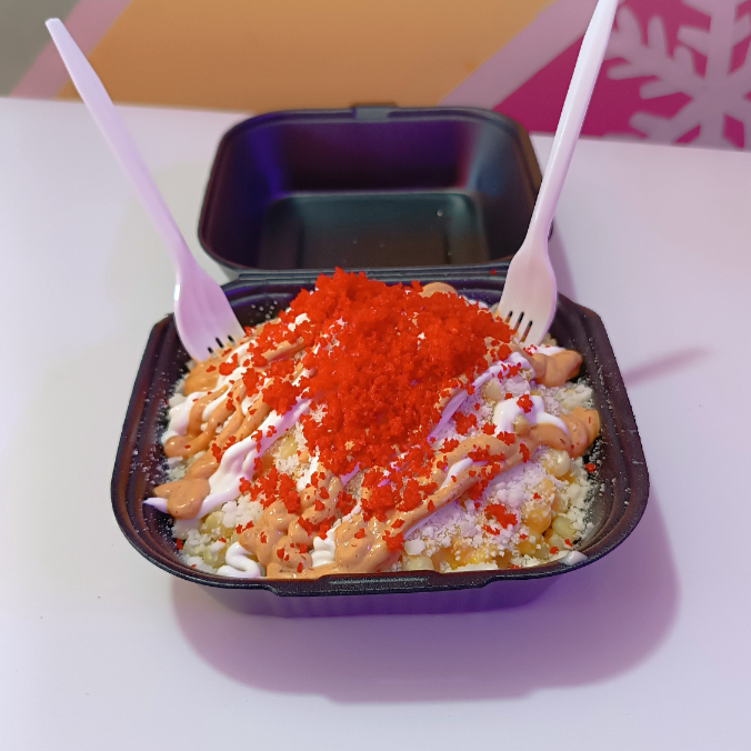 Ramen bien sazonado mezclado con elote, queso para nachos, queso granulado y un toque cremoso de crema. Coronado con chipotle para el picor perfecto y Cheetos Flamin’ Hot para ese crunch adictivo. Un combo explosivo que te despierta el alma y el antojo. 😎🔥