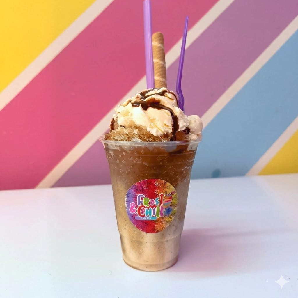 Prueba nuestro irresistible Raspanieve: una deliciosa base de tu sabor favorito, coronada con suave nieve de vainilla, el topping que más te guste, un toque de aderezo dulce y crujiente galleta para el final perfecto. ¡Una explosión de sabores y texturas en cada cucharada! 🍧✨