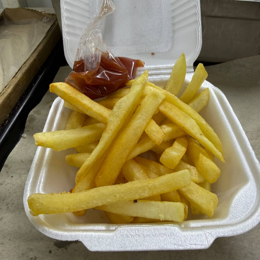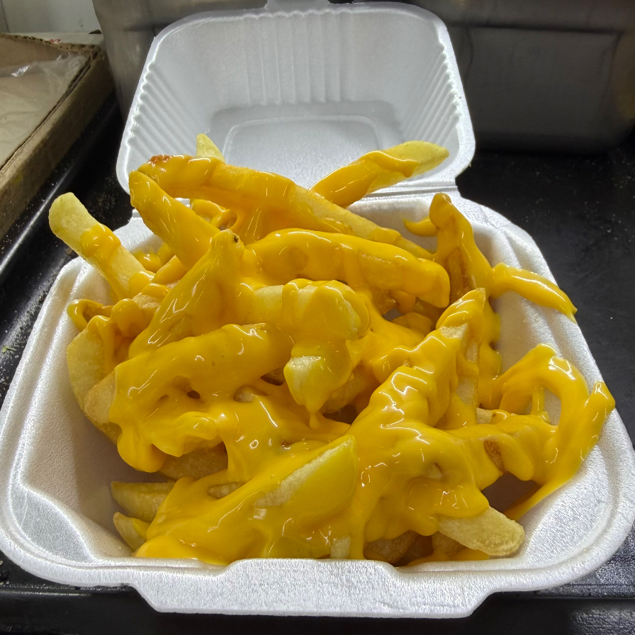 carnede rez, lechuga,tomate, cebolla, quezo amarillo y ketchup incluye papas sencillas