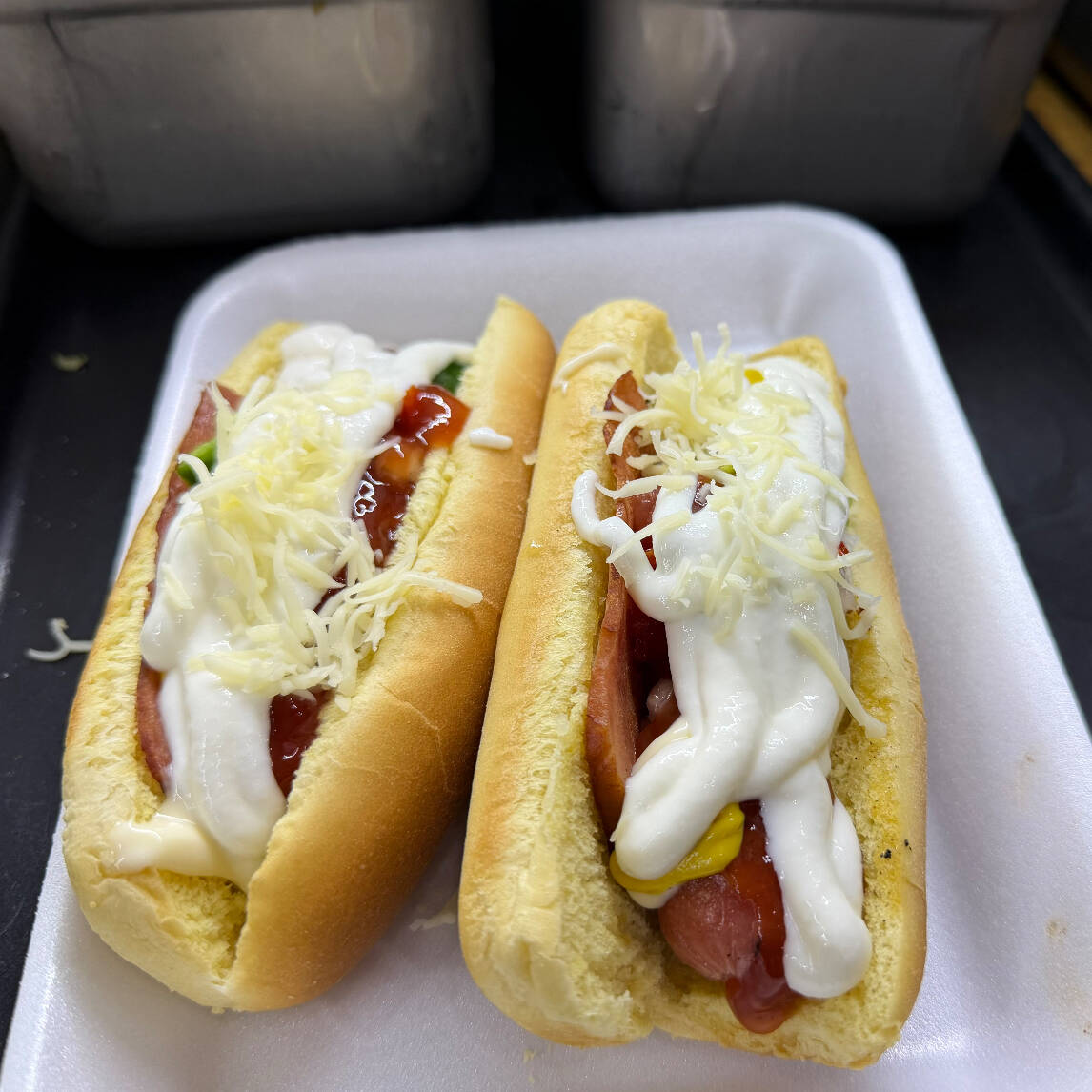 winnie,chile jalapeño, tomate, cebolla, quezo blanco, ketchup, mostaza,mayonesa y crema