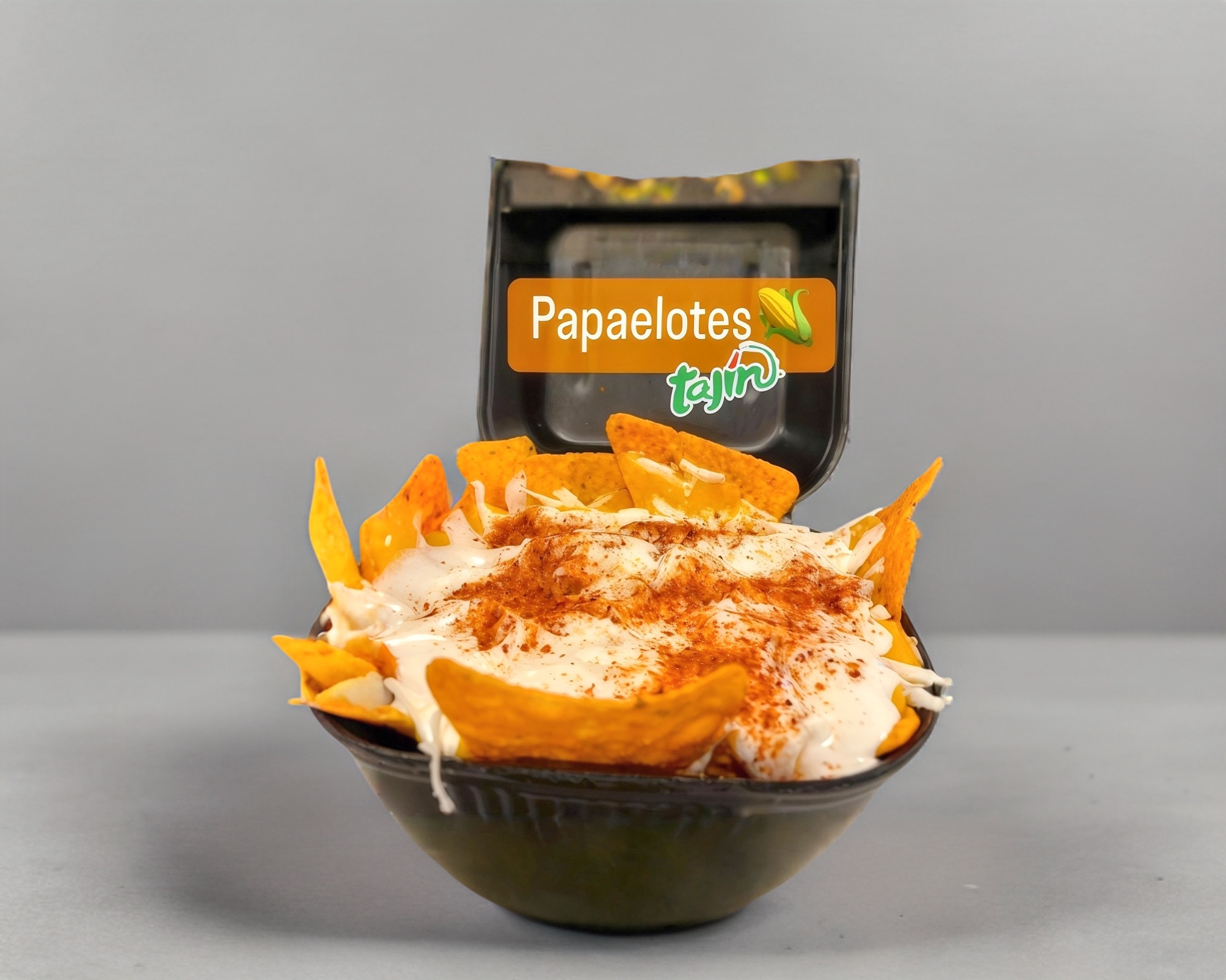 Elige entre Papas Caseras o Sabritas, acompañadas de Cacahuates, Churromix, Pepino, Rieles de tamarindo y tus salsas favoritas empaquetadas.