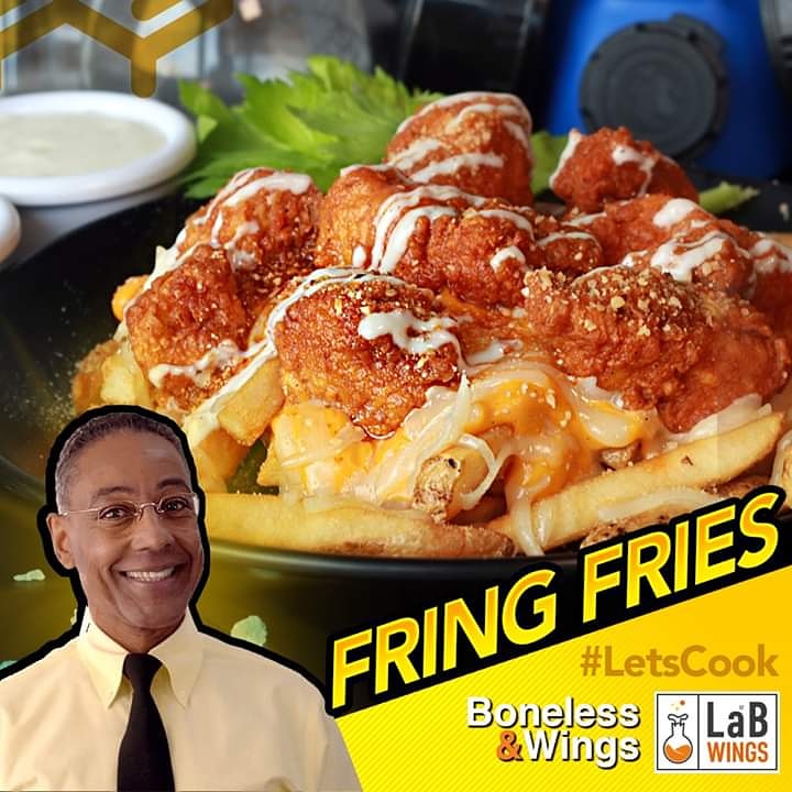 Boneless en la salsa de tu elección (150g), sirloin (120g) y tocino sobre una cama de papas francesas sazonadas (300g) bañadas en 3 tipos de queso (monterrey jack, lavoisier y parmesano), aderezadas con ranch. Recomendado para 2 personas.