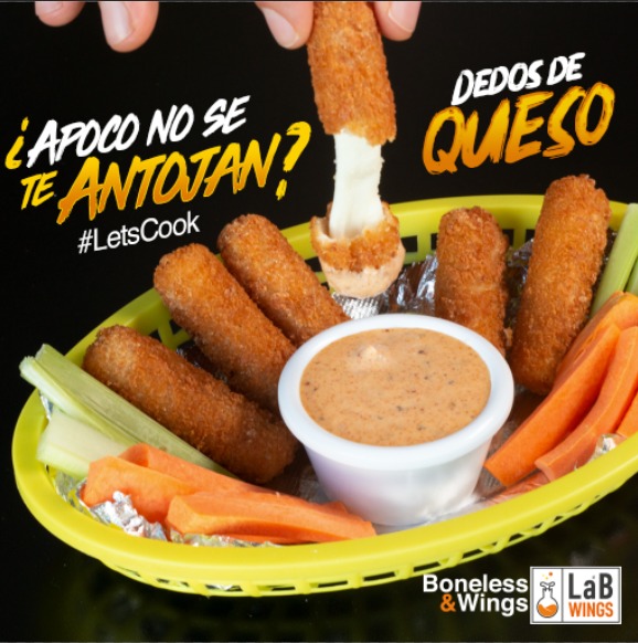 6 Piezas de cremosos y crujientes dedos de queso mozzarella empanizados. Acompañados de una deliciosa salsa especial,