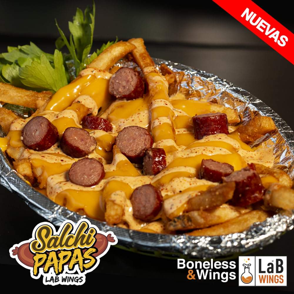 300 Gramos de papas francesas sazonadas, bañadas en 3 tipos de queso, 250g de boneless y aderezo ranch. Recomendado para 2 personas.