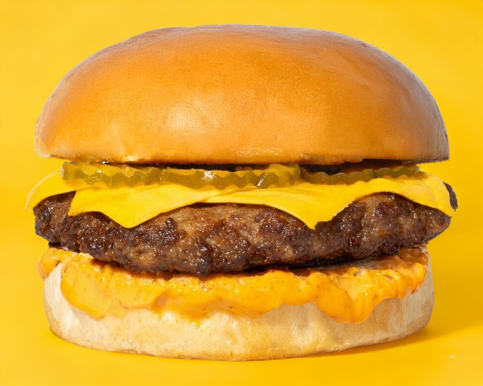 Para los amantes del queso: jugosa carne preparada con nuestra receta especial, doble queso americano, pepinillos y nuestro aderezo de la casa, todo servido en un suave y dorado pan brioche.