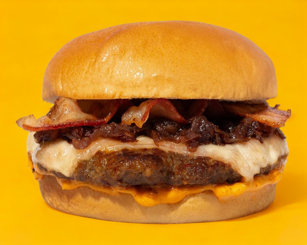 Preparada con nuestra mezcla especial de carne, queso Cheddar, tiras de tocino, cebolla caramelizada y nuestro aderezo de la casa, todo servido en un suave y dorado pan brioche.