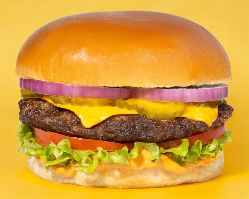 Preparada con nuestra mezcla especial de carne, queso tipo Chester, lechuga crujiente, tomate fresco y nuestro aderezo de la casa, todo servido en un suave y dorado pan brioche.