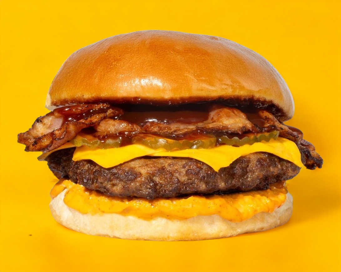 Preparada con nuestra receta especial de carne, salsa BBQ, tiras de tocino, doble queso americano, pepinillos y nuestro aderezo de la casa, todo servido en un suave y dorado pan brioche.