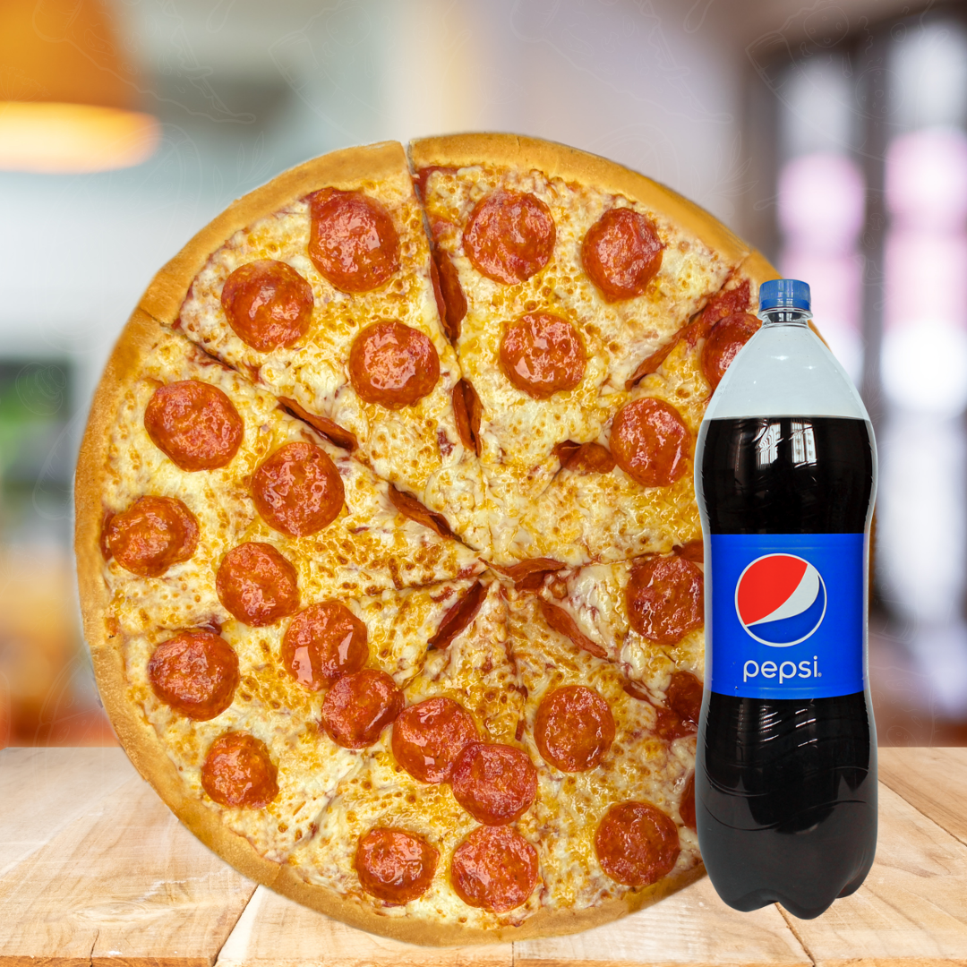 Pizza de Peperoni Extra Grande + Refresco Pepsi 1.5l