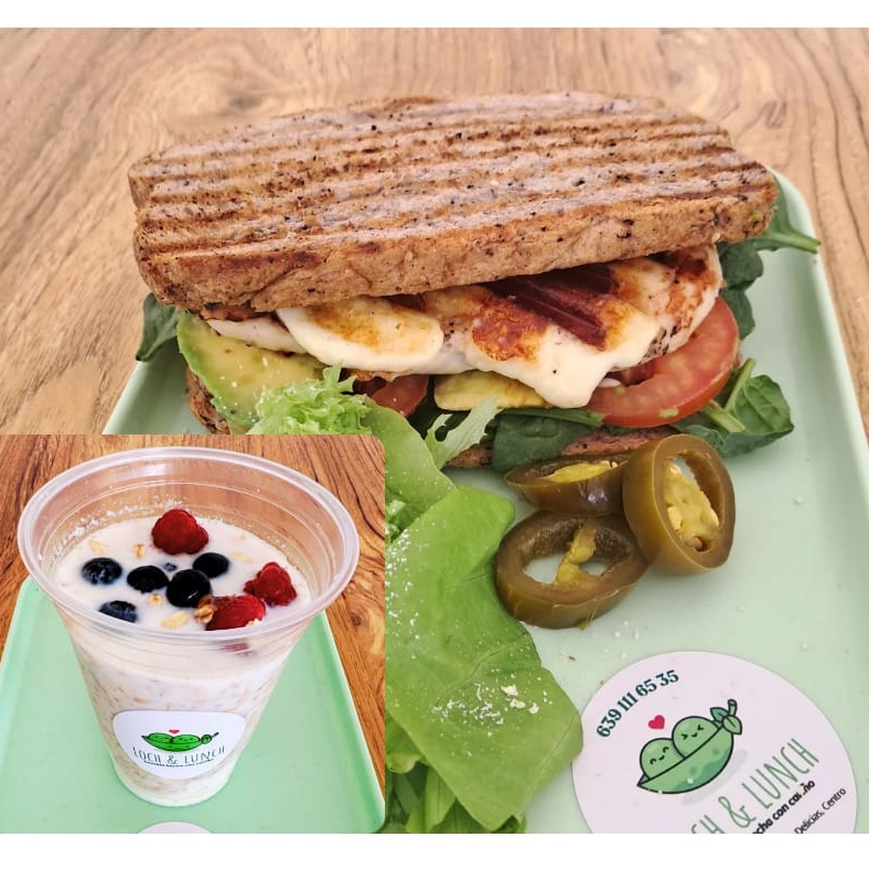 Sandwich Pollo C*1 + Overnite Oats con Frutos y Crema de Cacahuate*1