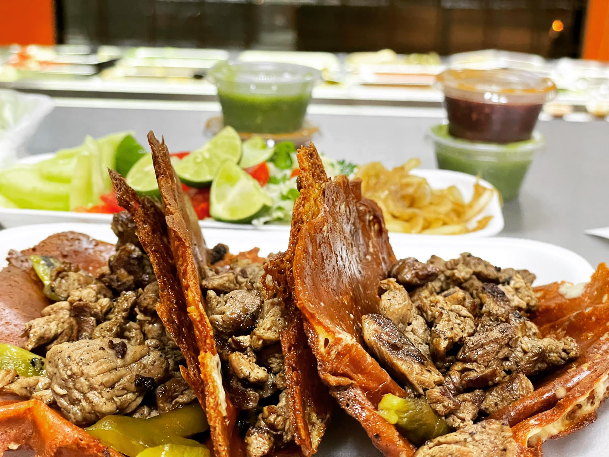 4 unidades tacos con tortilla a eleccion, rebanadas de rib eye a la plancha con sazón de la casa.