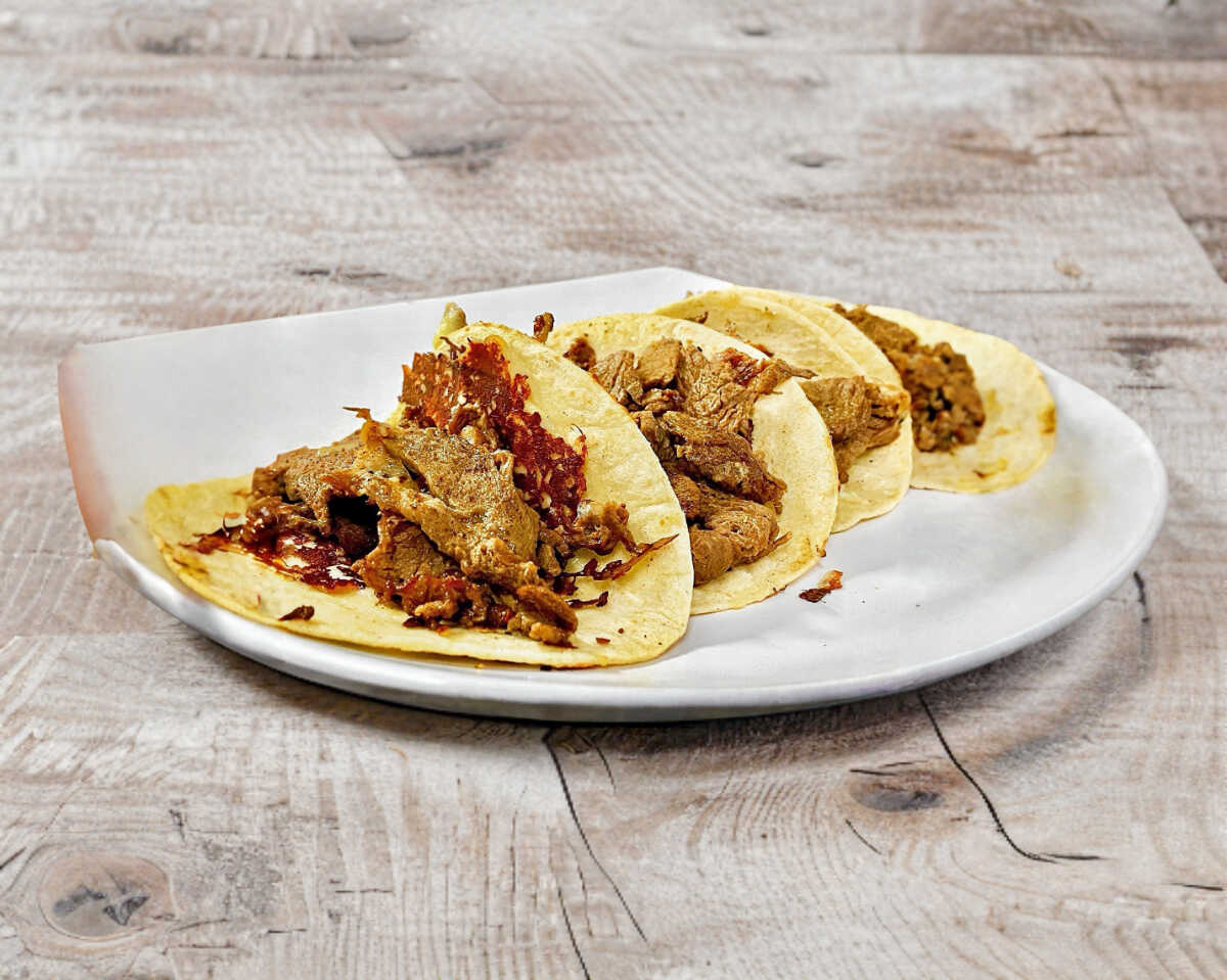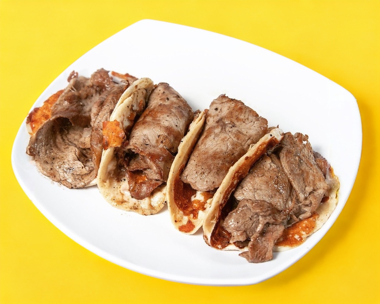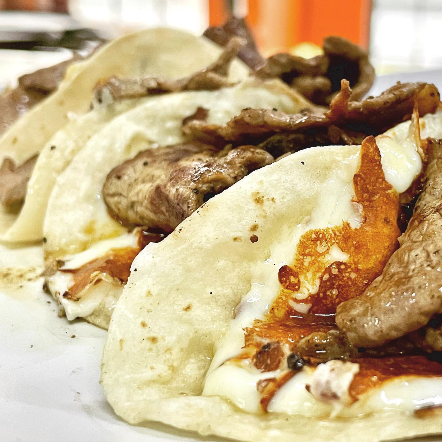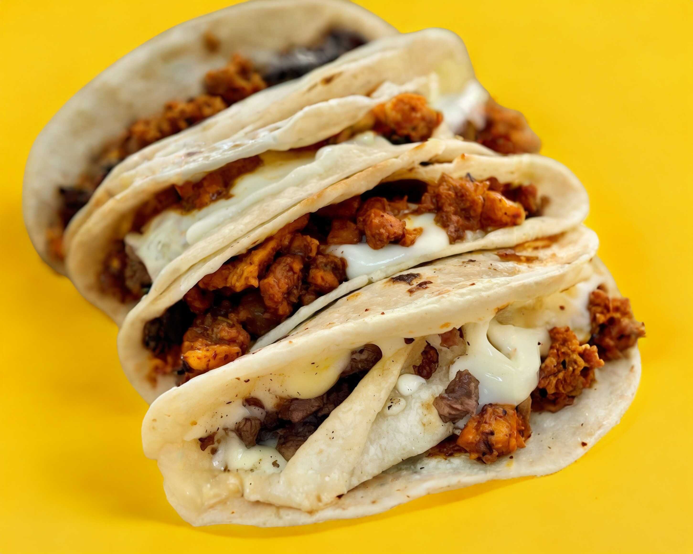 4 tacos de carne asada con queso.