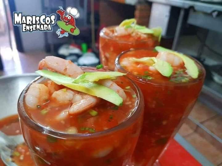 La receta secreta desde ensenada camarones cocidos, salsa bandera y de la Casa acompañado de aguacate.