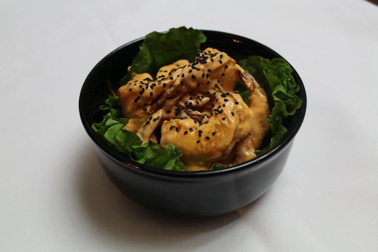 Camarones tempura, bañados en una salsa spicy, servidos sobre lechuga orejona, con un toque de ajonjolí.