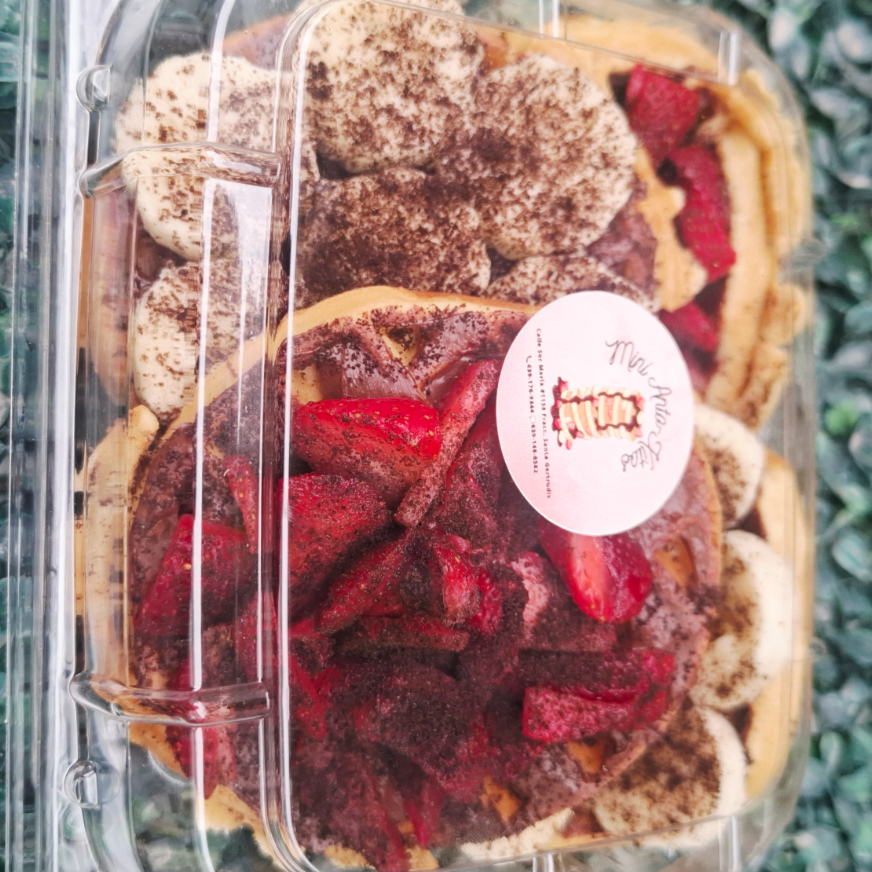 4 Waffles, 2 Jarabes, 2 Toppings, 2 Frutas