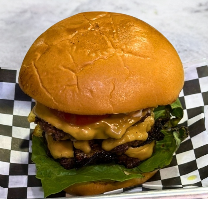 Hamburguesa con 3 carnes de 60gr c/u , en pan Brioche con queso amarillo y verdura*. Agregale cualquier extra y armala a tu gusto.