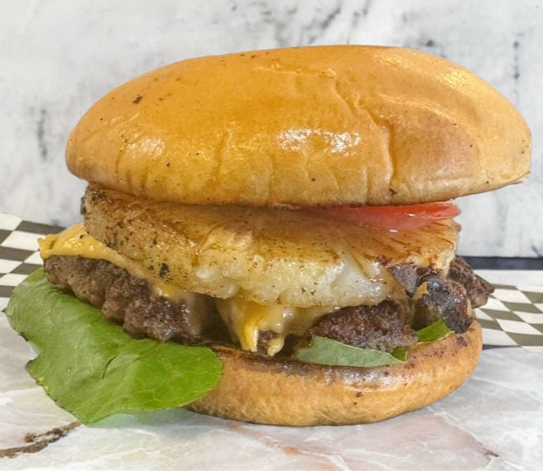 150 g de carne en pan Brioche con queso amarillo, piña asada y verdura*. Agregale cualquier extra y armala a tu gusto.