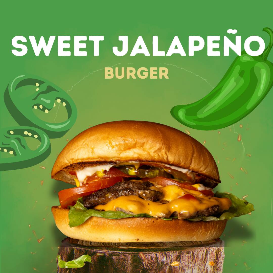 150 g de carne en pan Brioche con queso amarillo y verdura con nuestros jalapeños dulces que te atraparan en cada mordida.