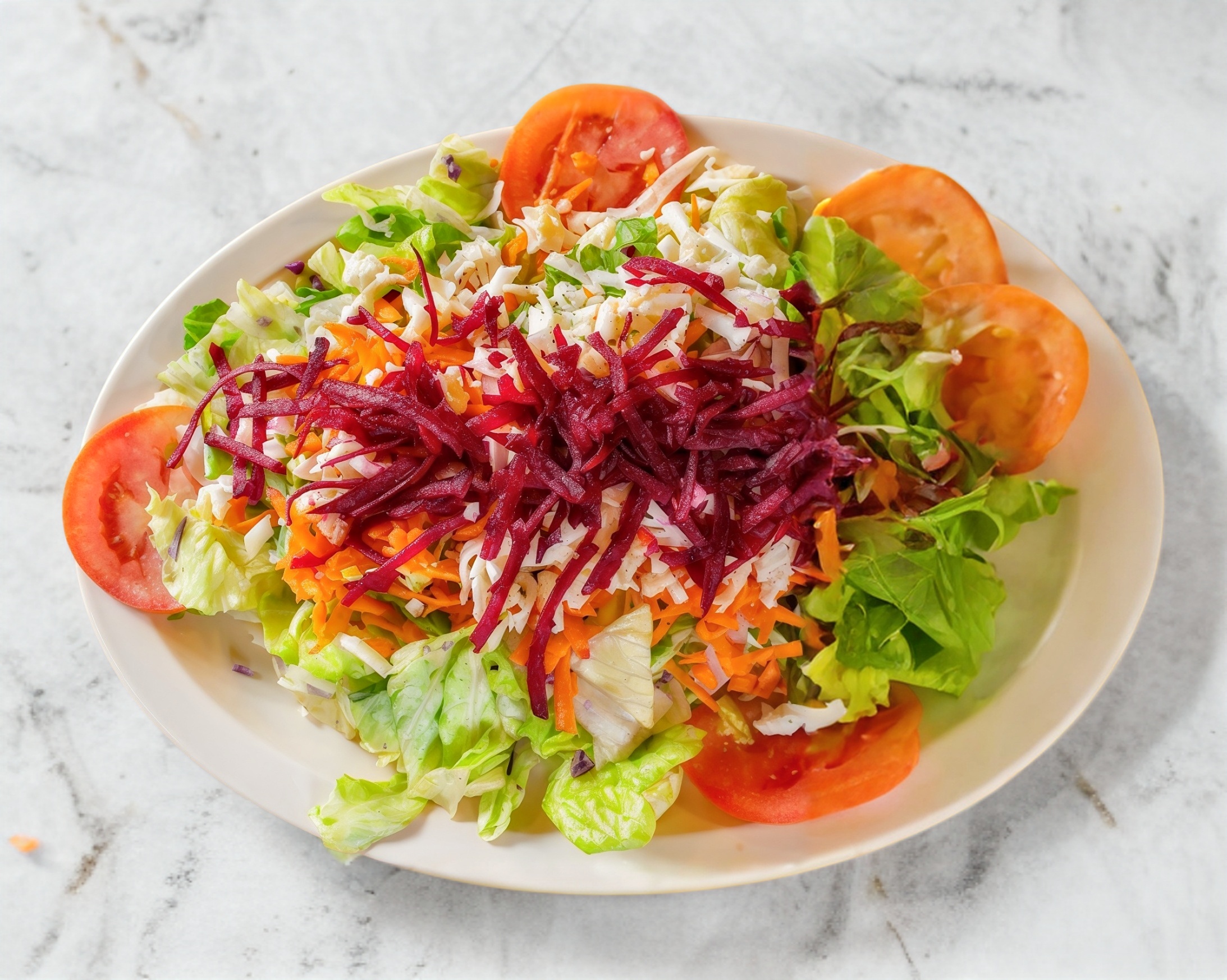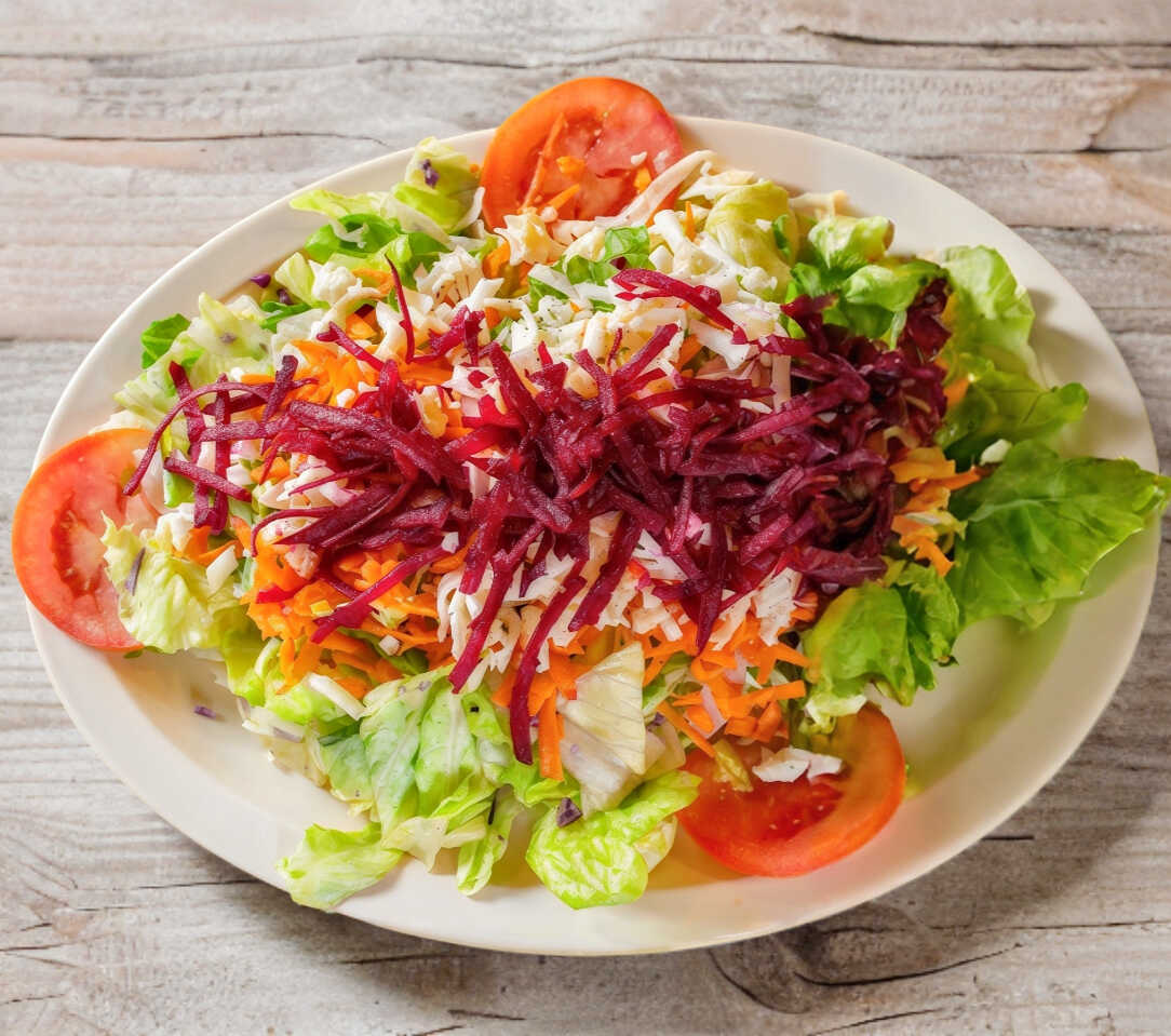 Lechuga, tomate, pepino, betabel, zanahoria, queso, jamón y aderezo a elección.