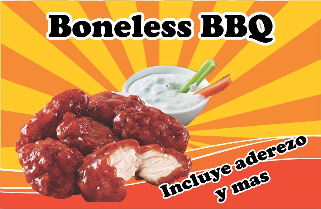 Orden de alitas acompañadas de salsa BBQ incluye aderezo.