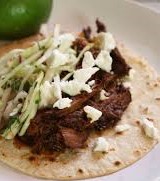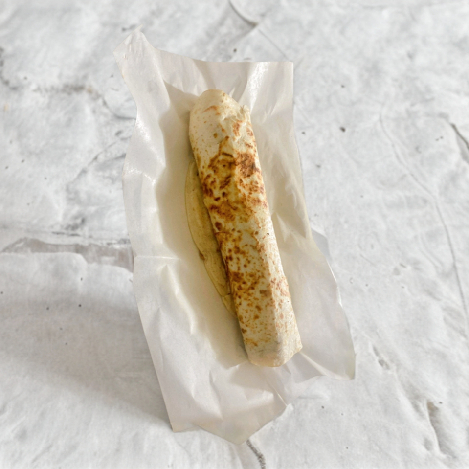 Deliciosa tortilla de harina con pierna en achiote, la especialidad de la casa, con queso, aguacate y verdura al gusto.