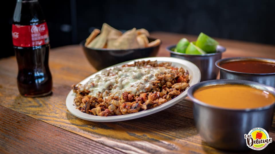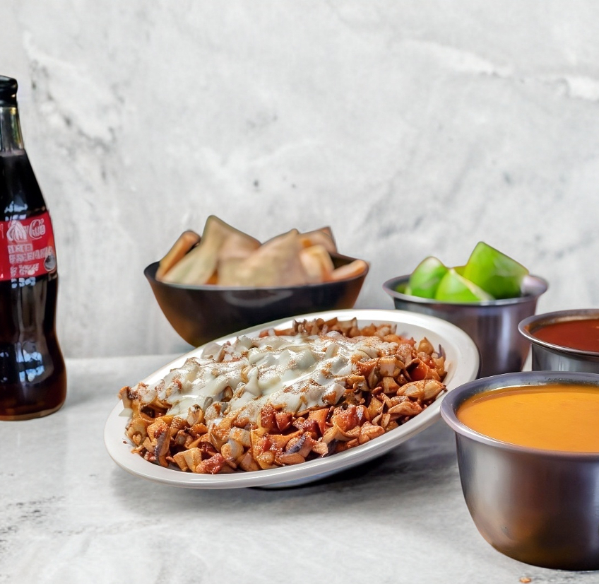 PASTOR, CEBOLLA, TOMATE, CHORIZO, AGUACATE Y QUESO.