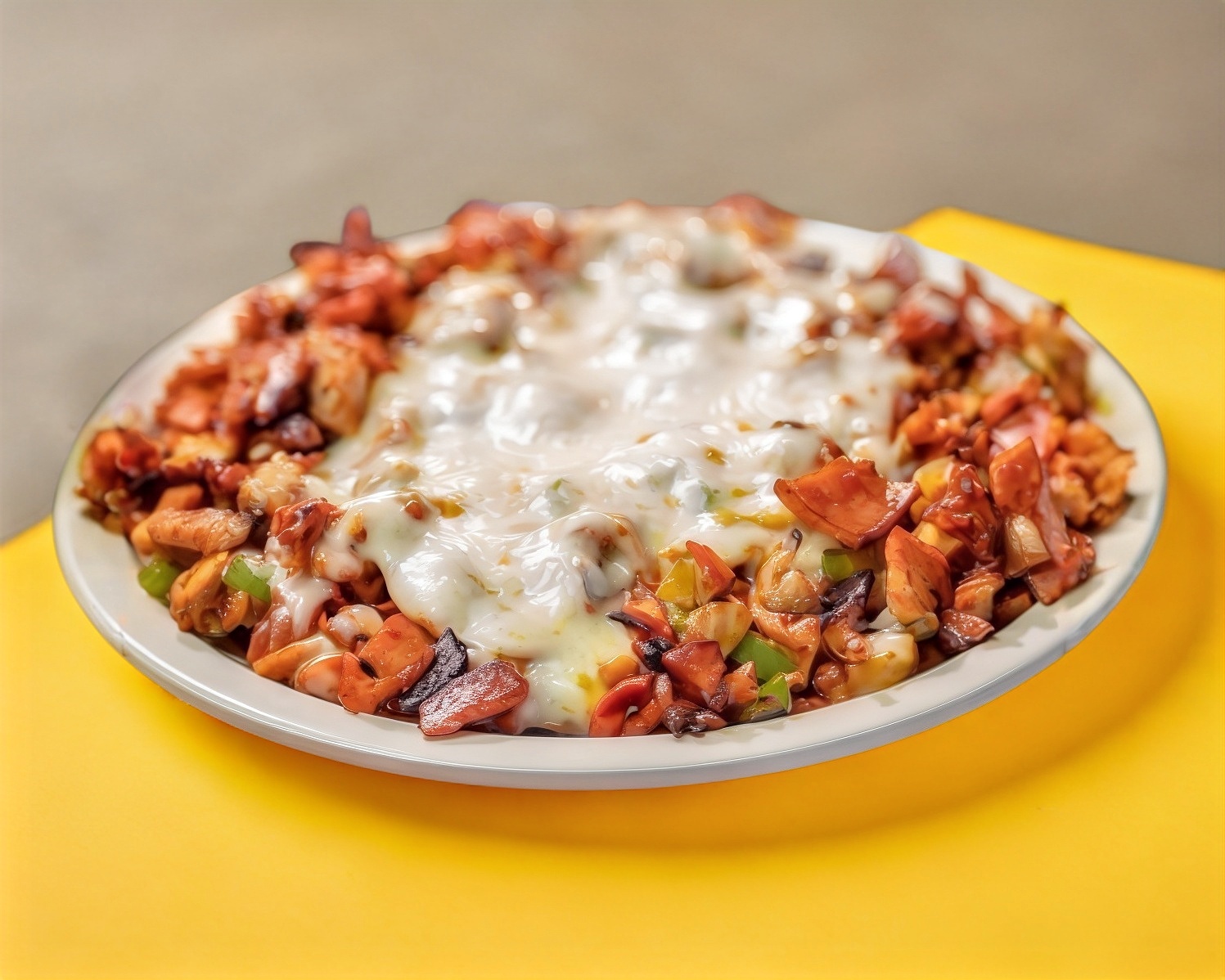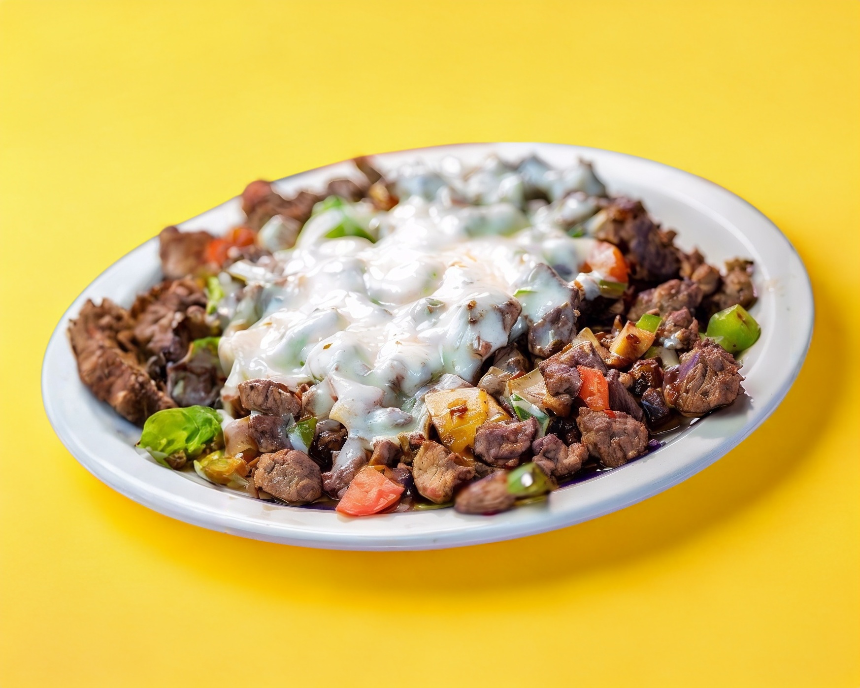 BISTEC, CEBOLLA, MORRÓN, TOMATE Y QUESO.