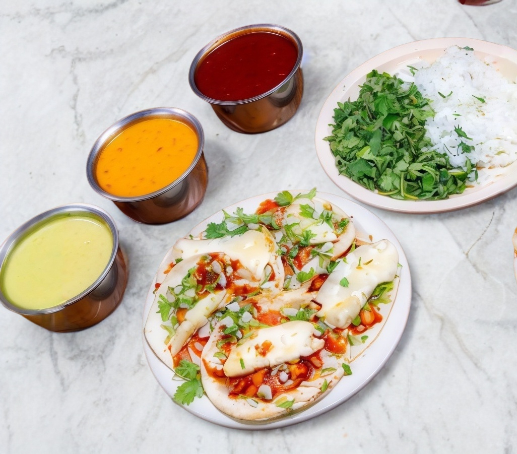 TORTILLA DE HARINA, CHULETA, CEBOLLA, TOMATE, CHORIZO Y QUESO.