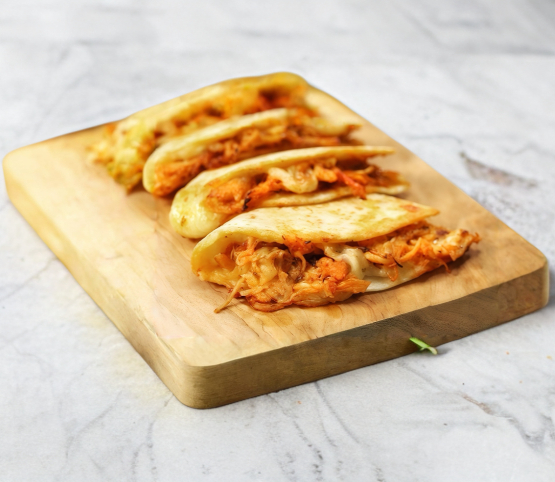 5 TACOS DE PASTOR GRATINADOS DE QUESO (PIÑA,CEBOLLA Y CILANTRO)