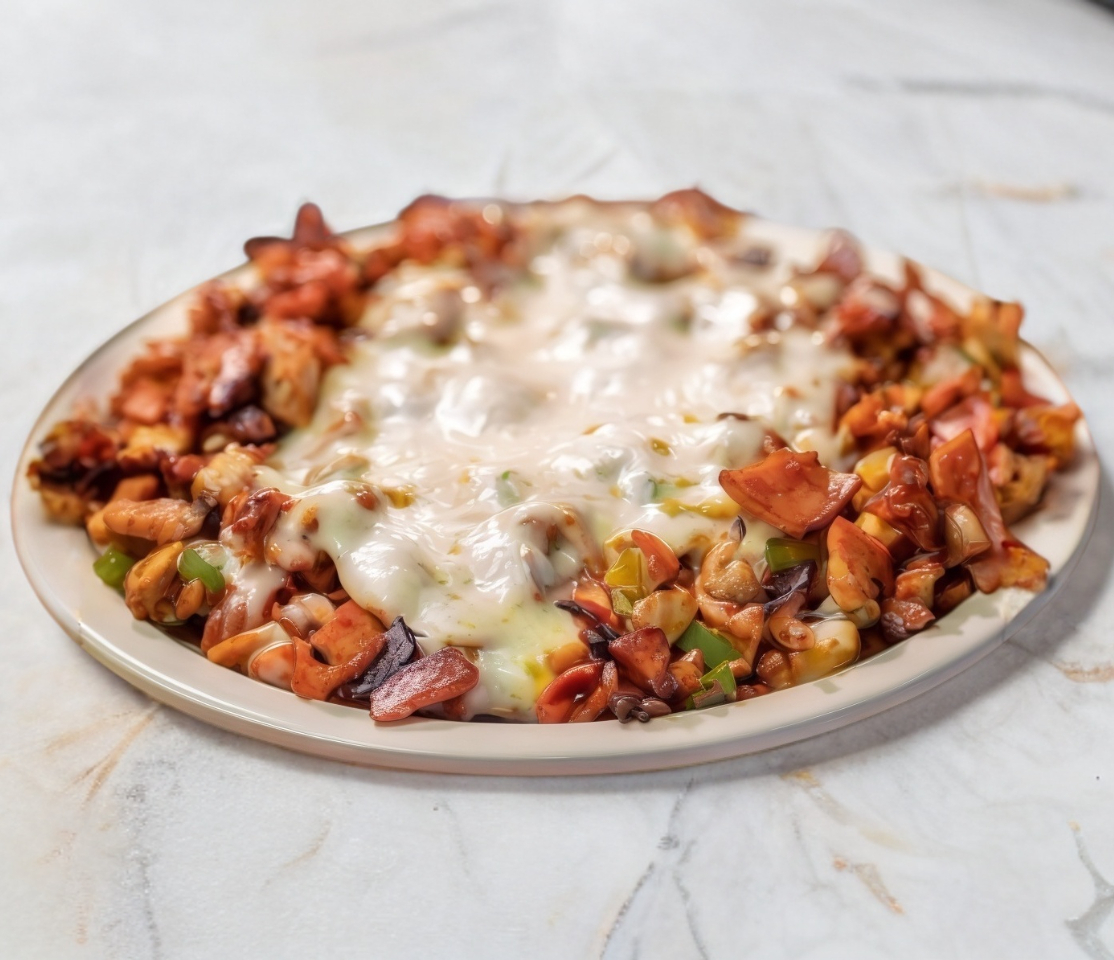 Pastor, chuleta, morron, tomate, cebolla, chorizo, jamon, tocino y queso.