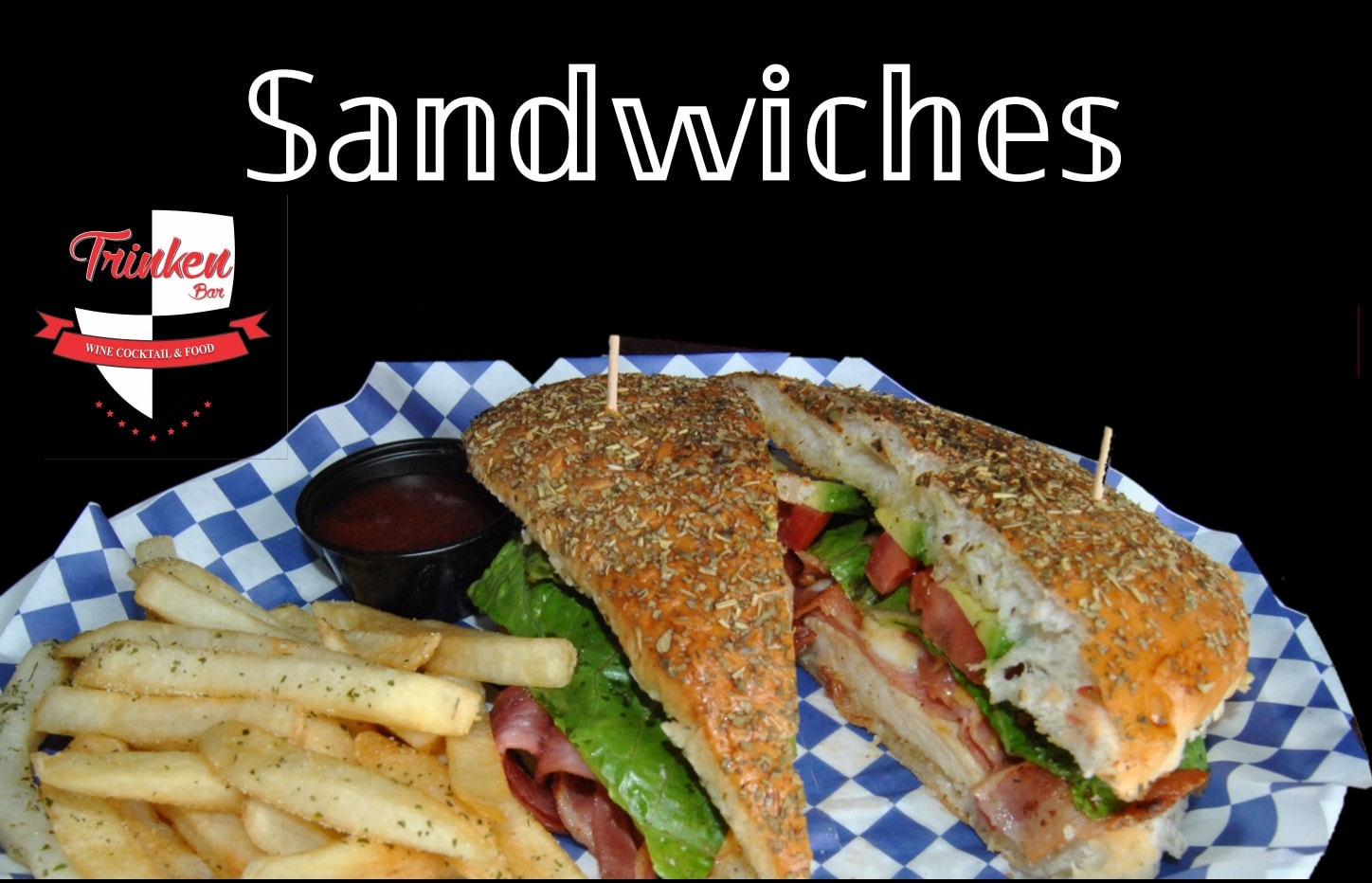 jamón de pavo, pollo asado, tomate, lechuga, mix de quesos, aguacate, tocino y aderezo con papas o ensalada