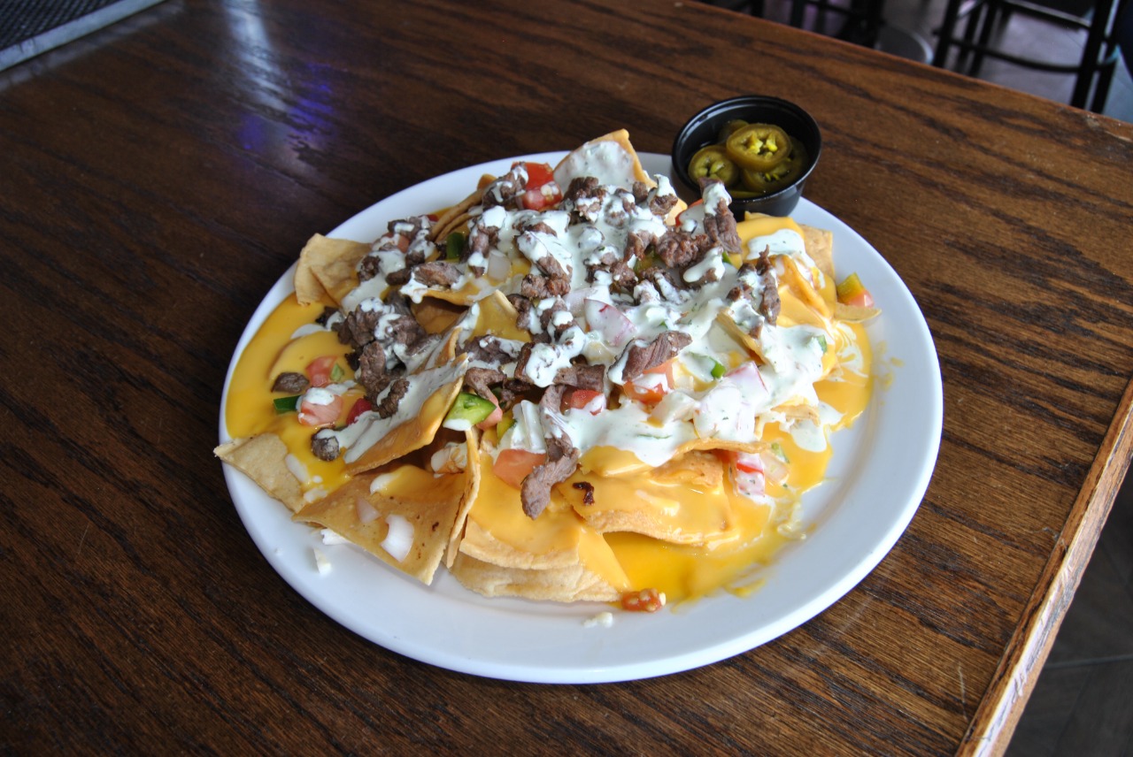 Queso amarillo,crema, pico de gallo y arrachera