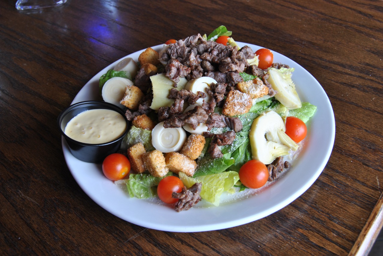 Jugosa arrachera asada, sobre mix de lechugas, tomate cherry alcachofas, palomitos, aderezo asiático, crotones, y parmesano