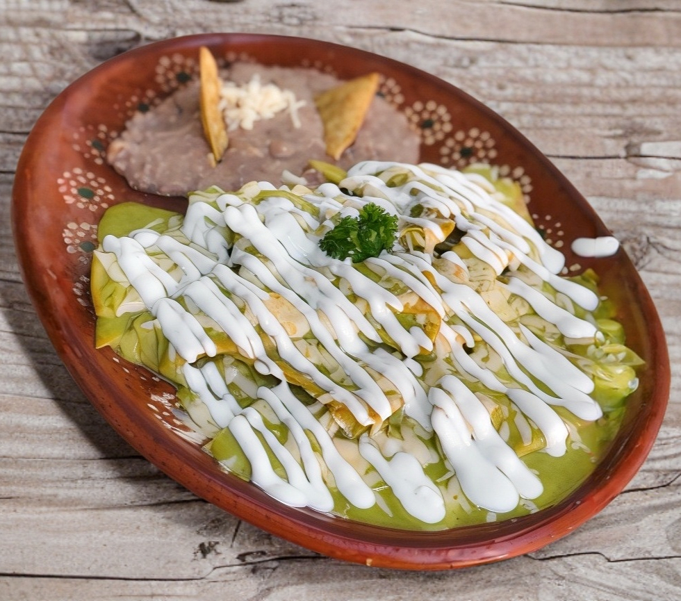 Rojos o verdes con queso gratinado, acompañados de frijoles refritos.