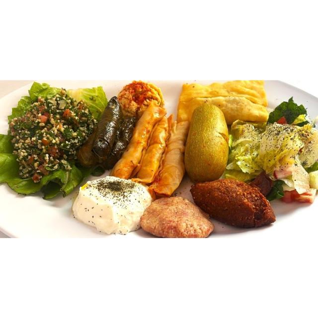 Contiene: 3 parras, 3 repollos, 1 empanada, 1 calabaza, 1 kipe bola, porciones de jocoque seco, hummus, tapule, ensalada y kipe crudo.