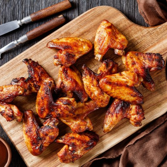 1/2 Kg Alas de pollo asadas y marinadas con la receta especial de la casa, jugosas y llenas de sabor. Incluyen 1 salsa a elegir y 1 aderezo ranch cremoso para acompañar.