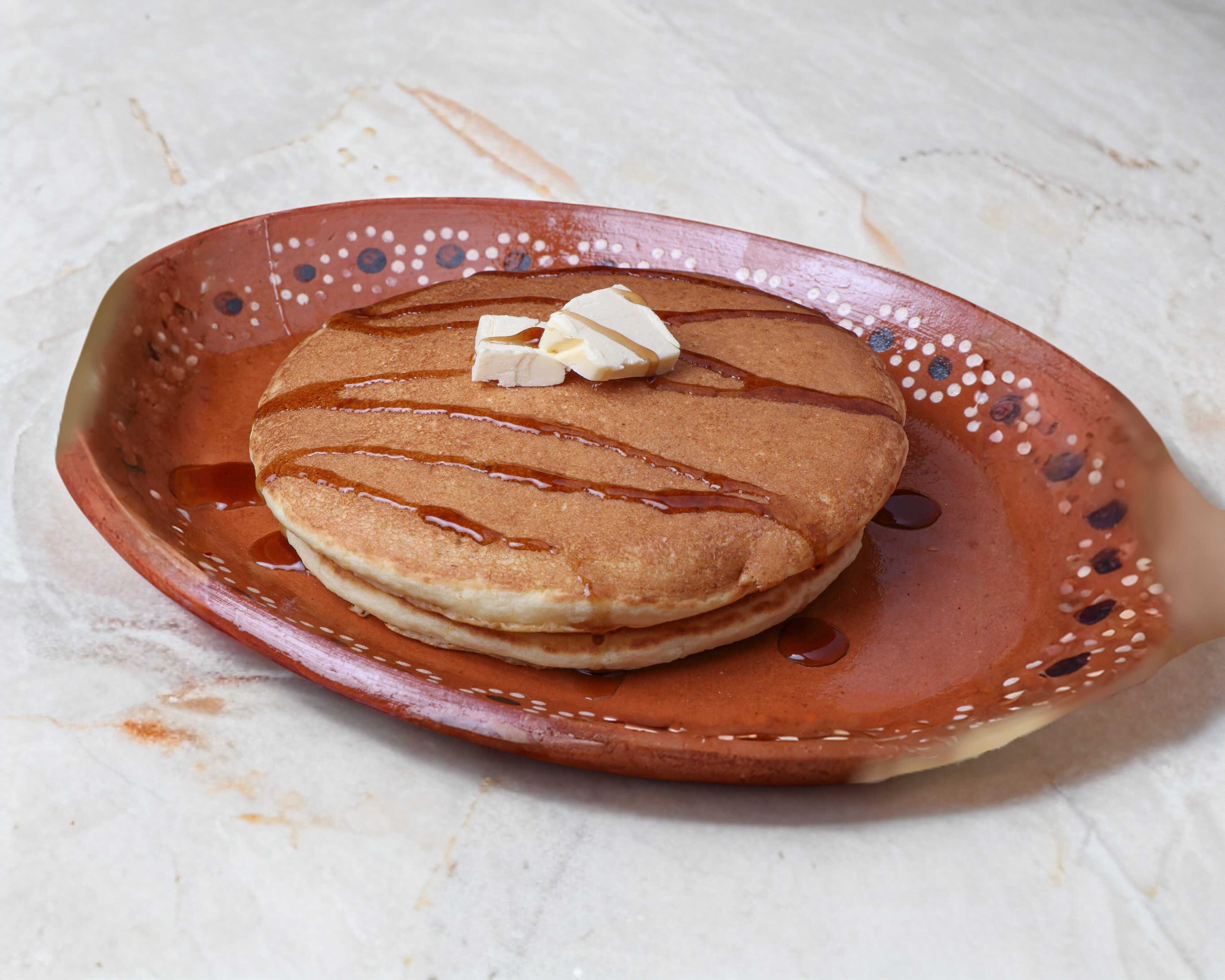 2 Hot cakes con mantequilla y miel o mermelada.