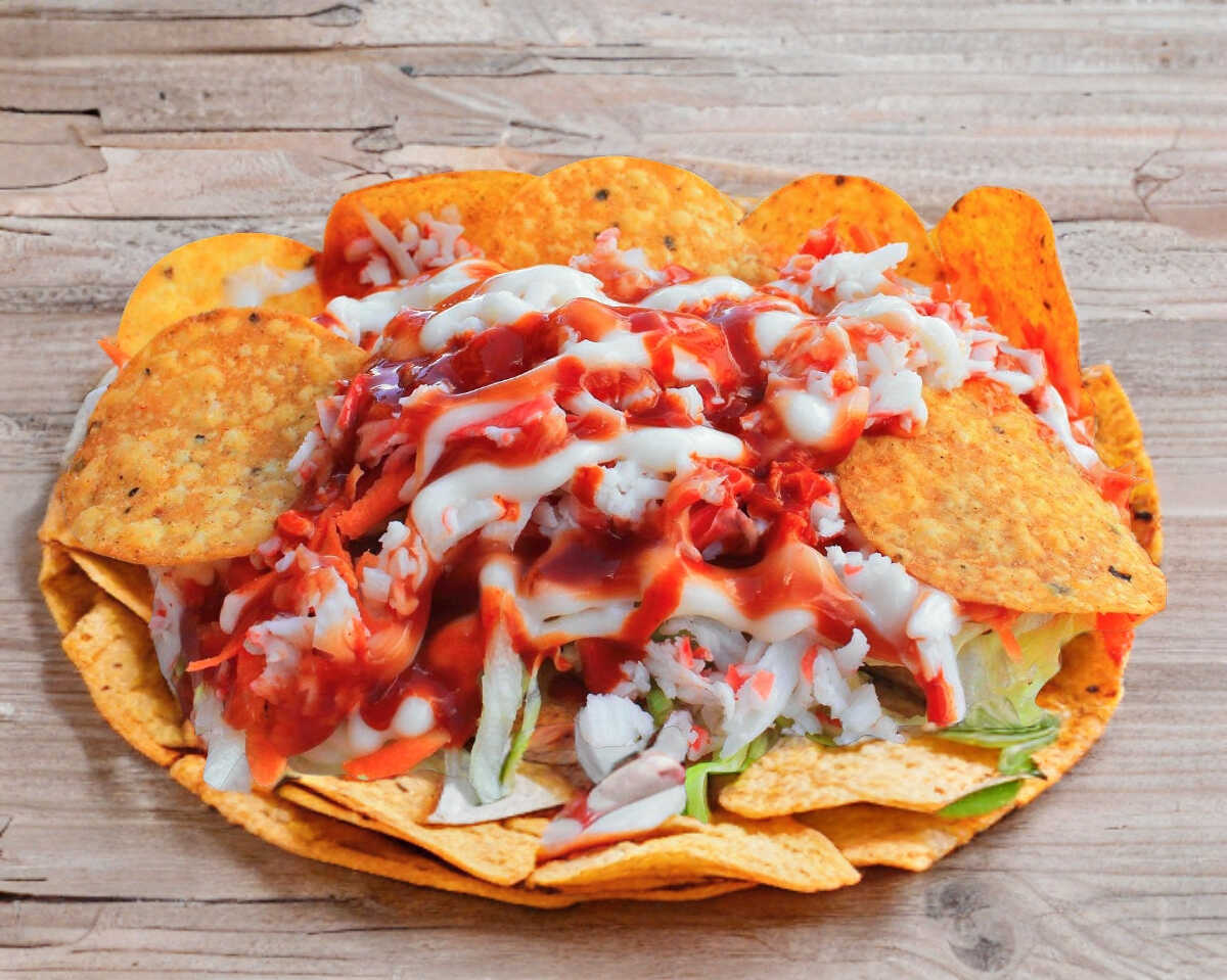 No puedes dejar de probar nuestra deliciosa receta, elote, frijol o mixto, crema, mayonesa, aderezo de chipotle, queso amarillo, cátsup y rodajas de jalapeño.