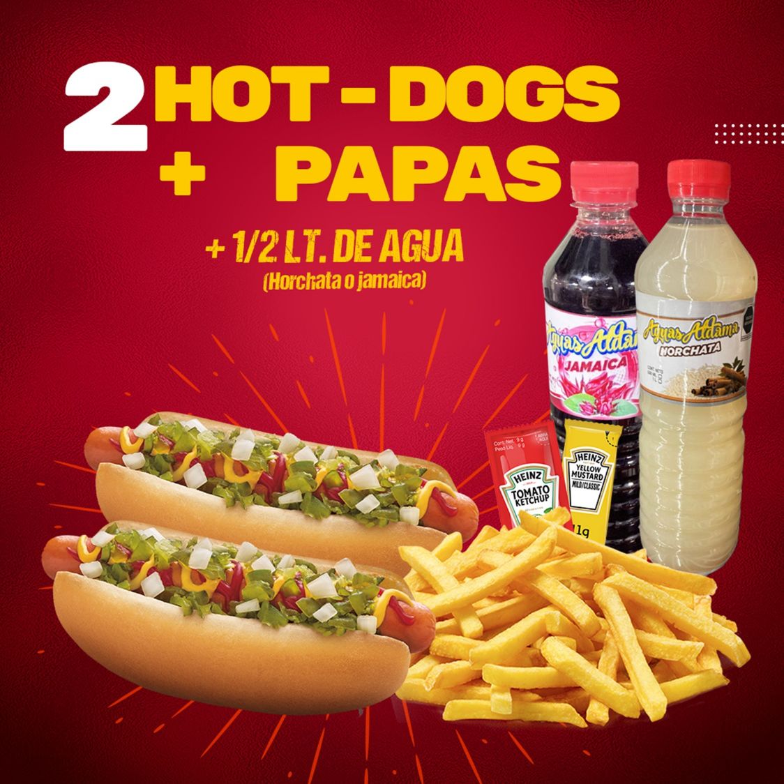 HOT DOG CLASICO*2 + Agua horchata 500 ml*1 + Papas a La Francesa*1