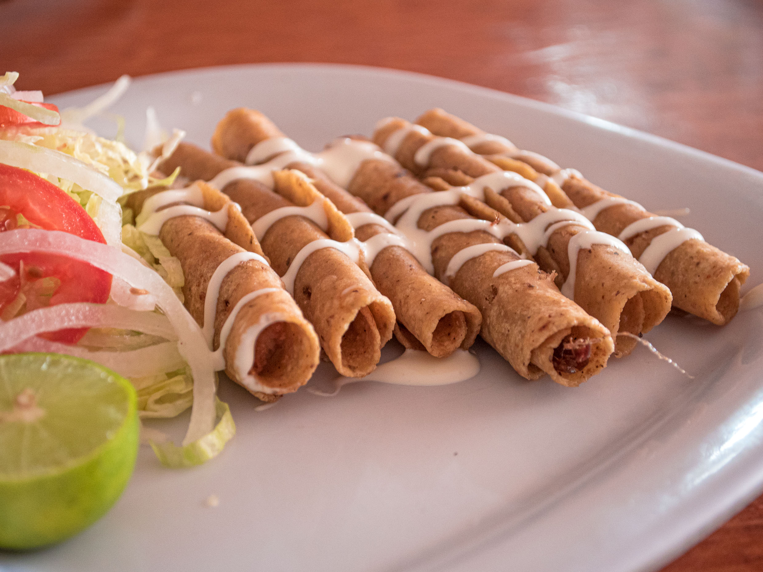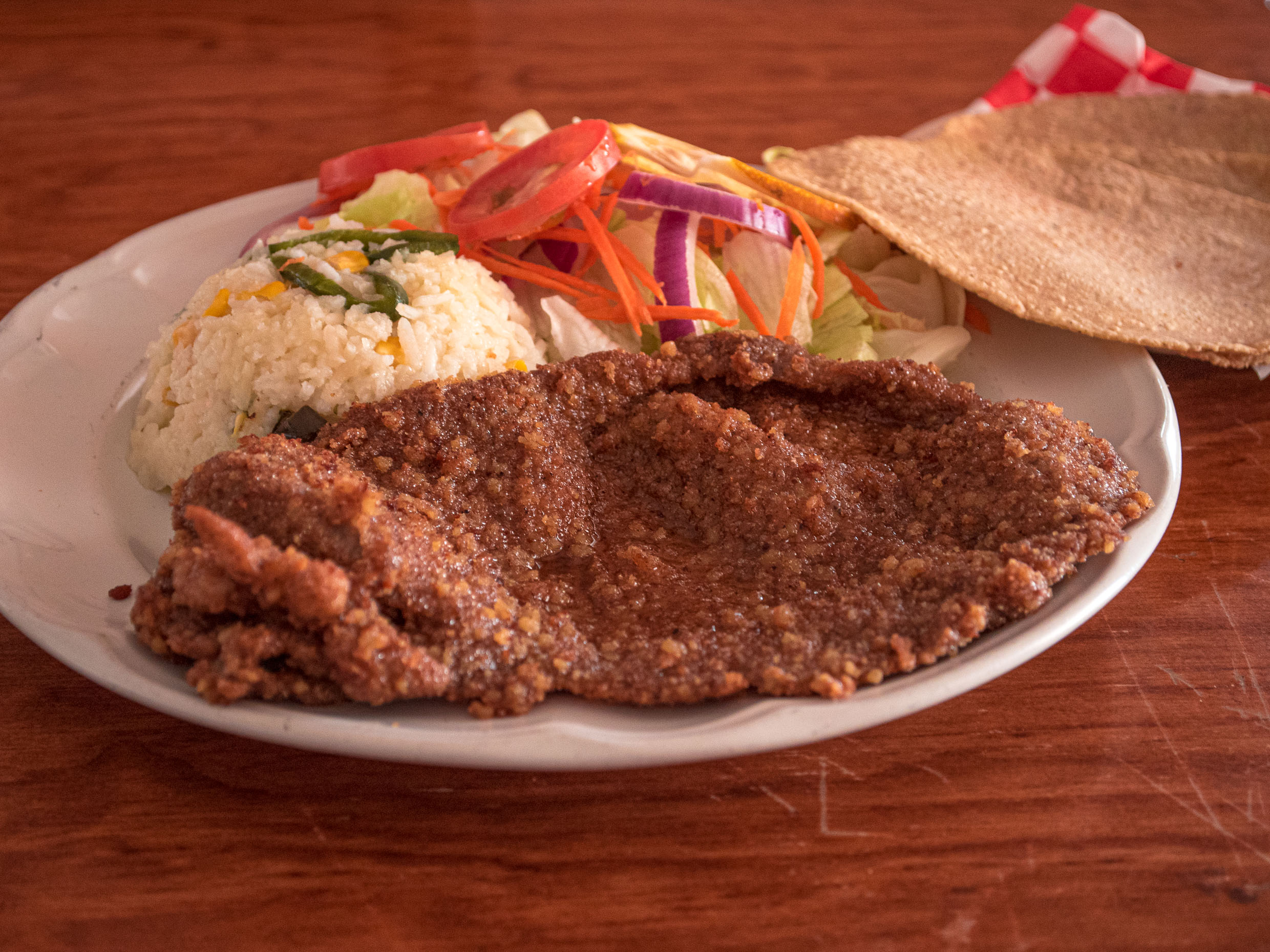 Acompañados de arroz, frijoles y tortillas caseras.