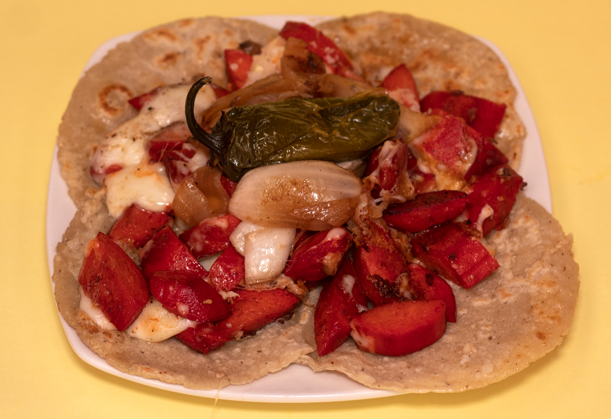 Burros de Carne*2 + Orden de Salchicha Asada con Queso*1 + Frijoles Charros 250 kg*1 + Gringa*1 + PEPSI 400 ML*2
