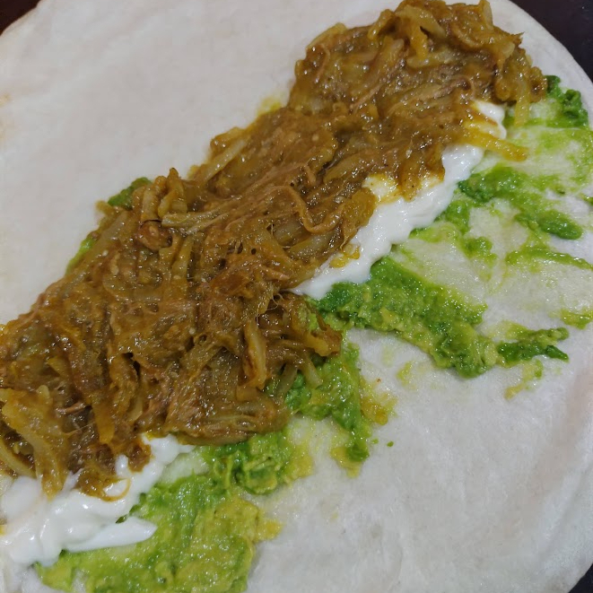 Tortilla de Harina, aguacate, mayonesa, deshebrada verde