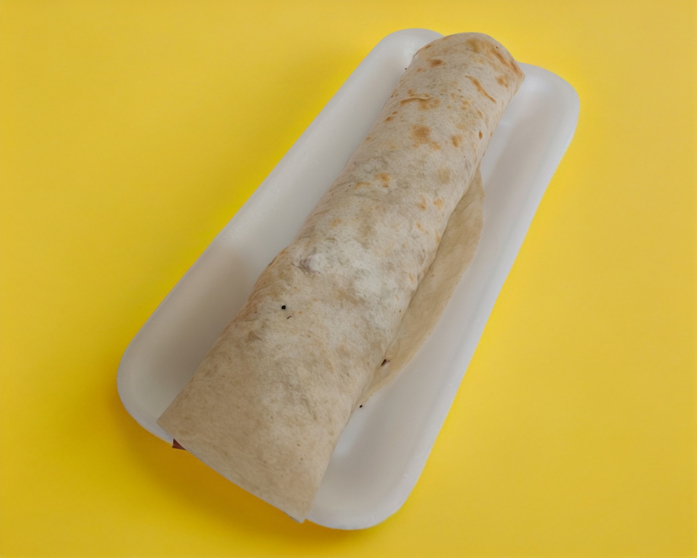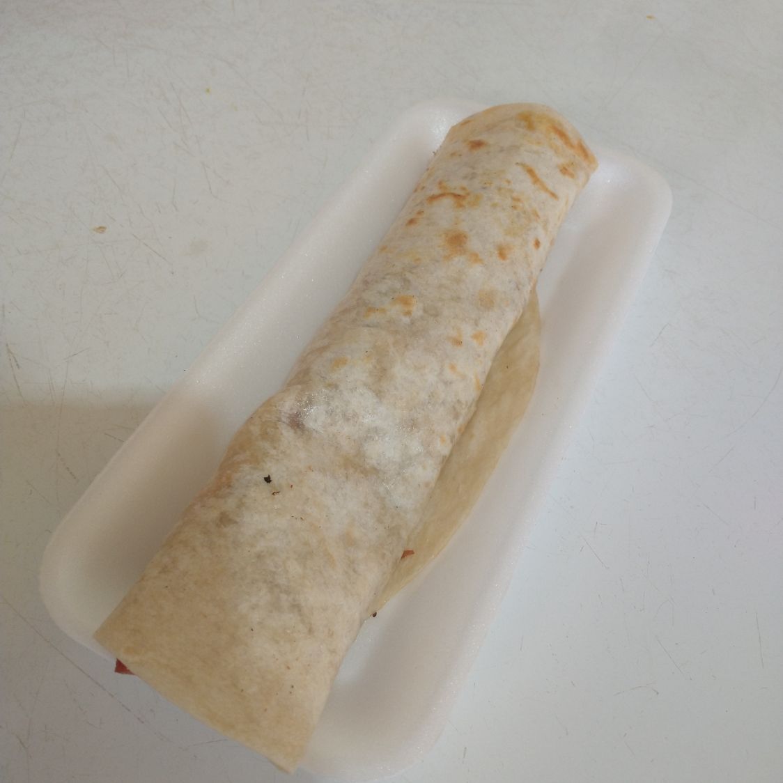 Tortilla de harina, mayonesa, deshebrada, tocino, salchicha.