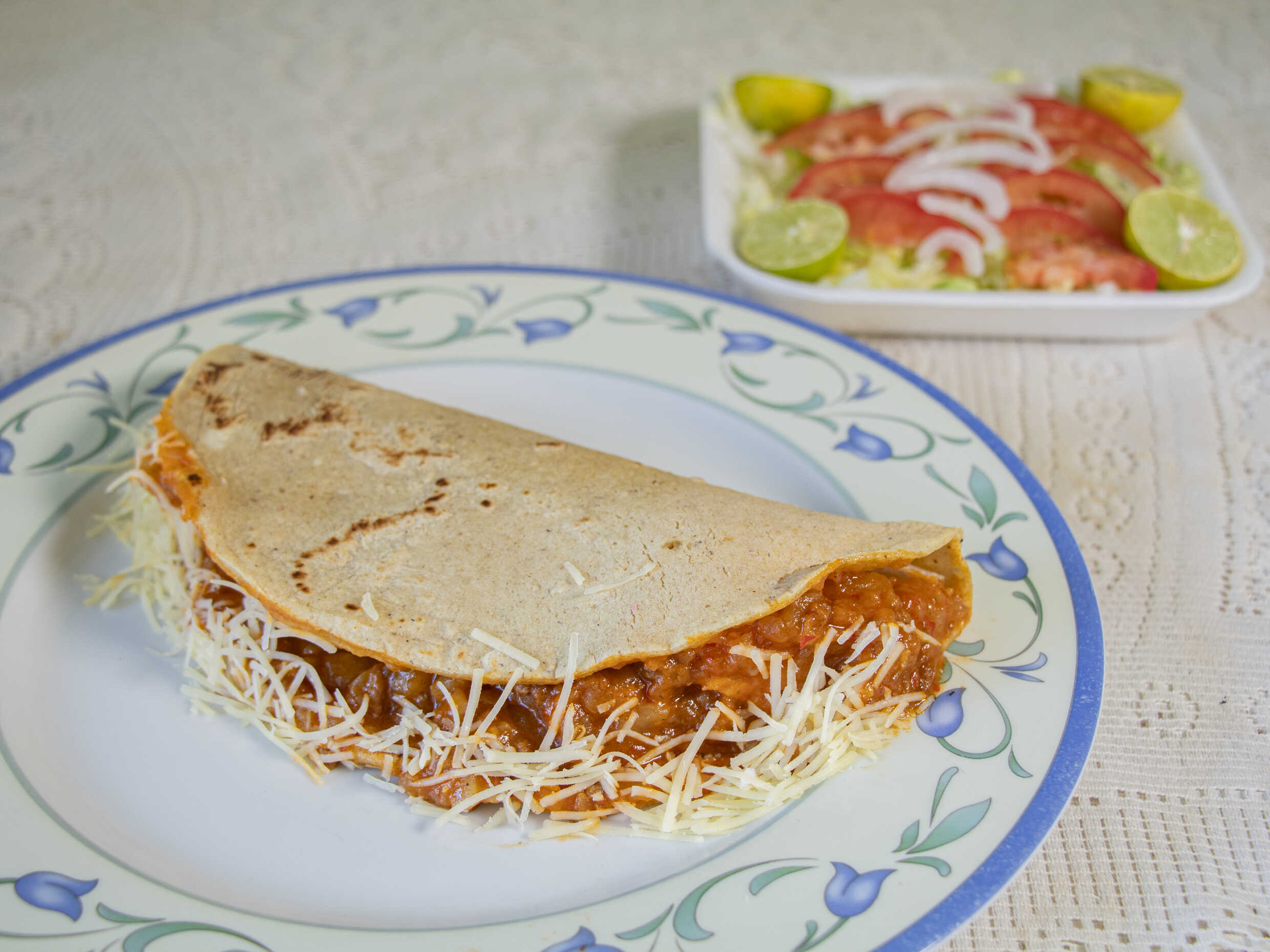 Quesadilla de maíz o harina rellena del guiso a elección.