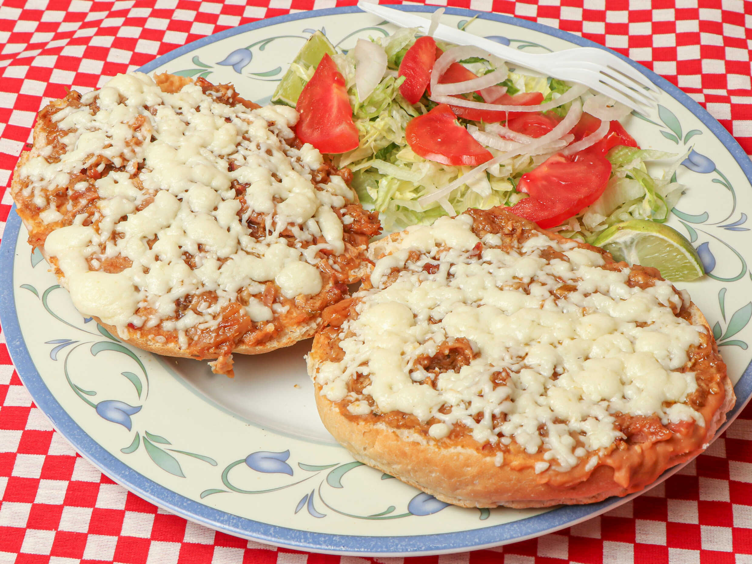 Par de molletes con frijoles y guiso a elección.