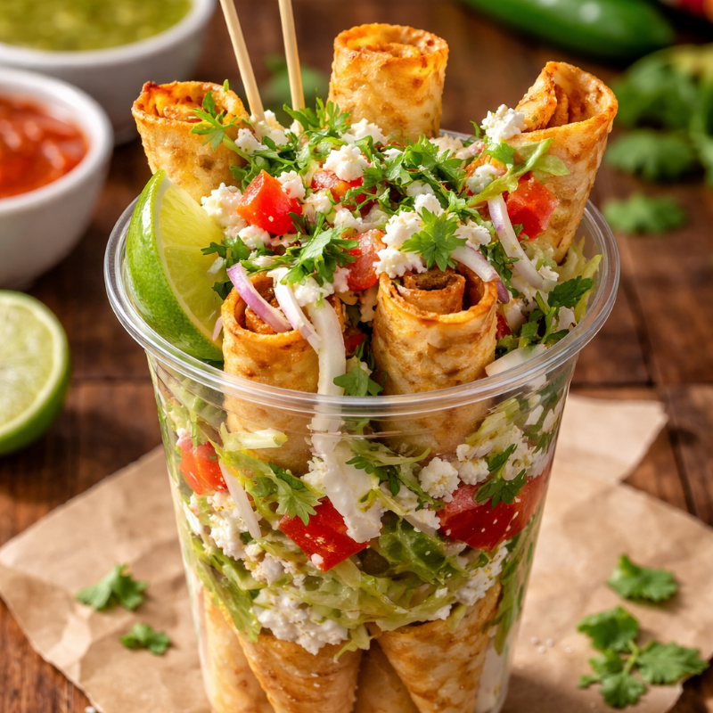 Repollo, tomate, cueritos, crema y salsas, todo va por separado.
