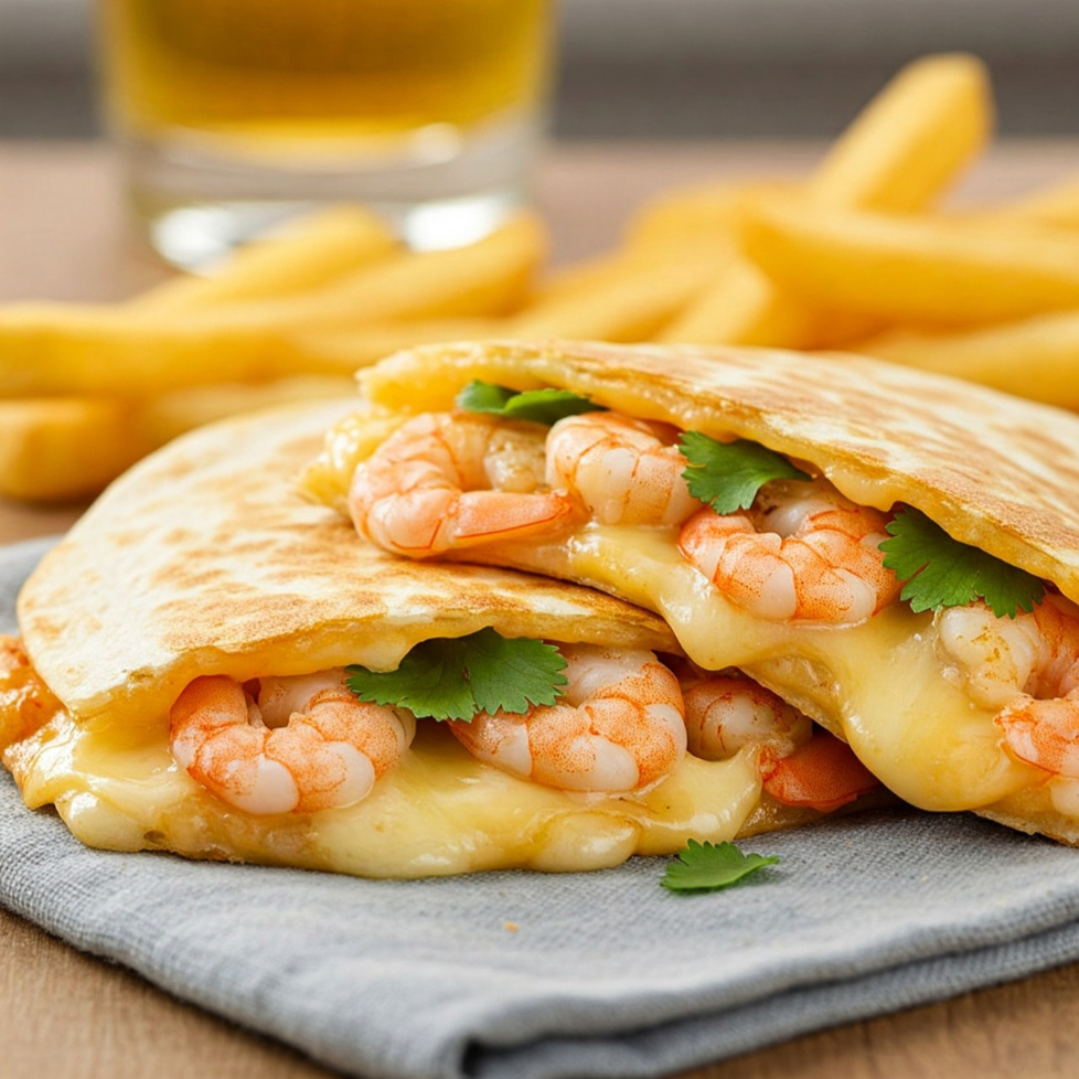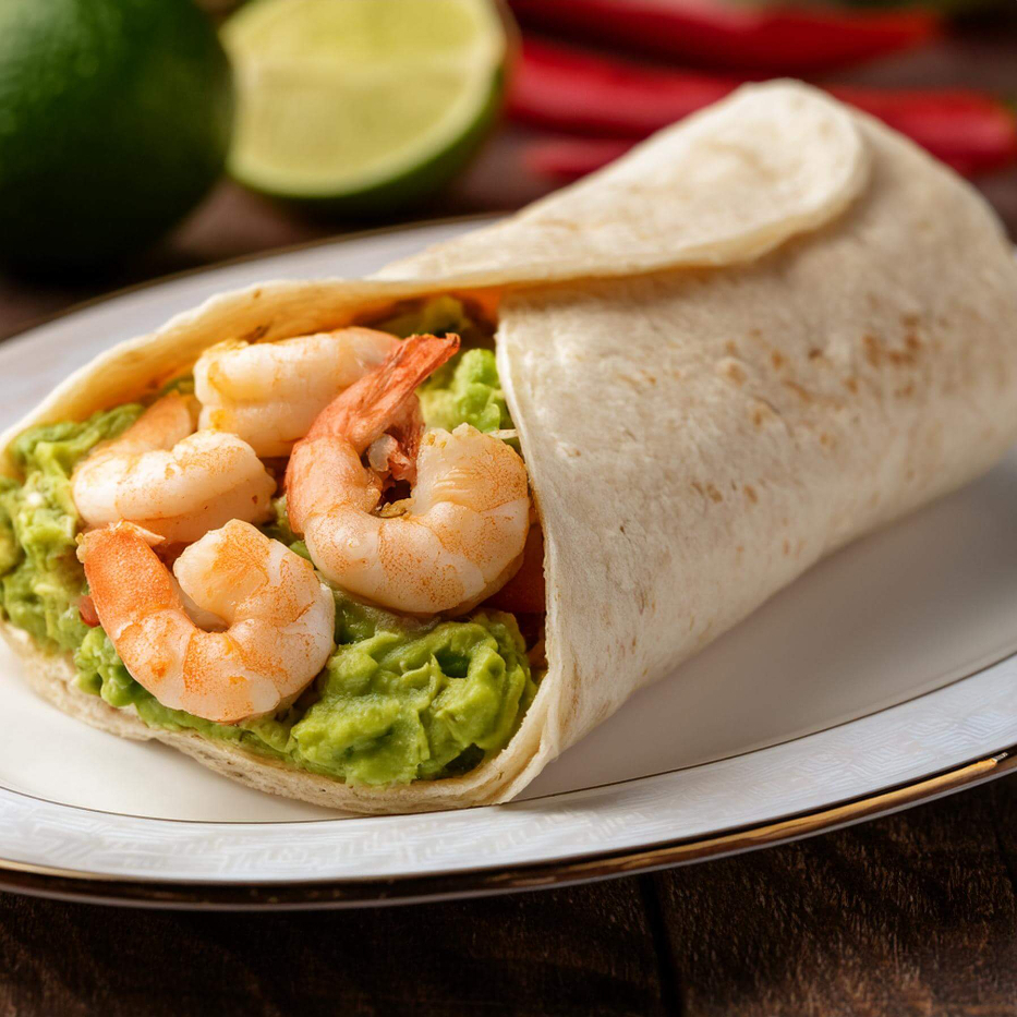 tortilla de harina, Camarones.queso,jamon y rajas de chile poblano asadas