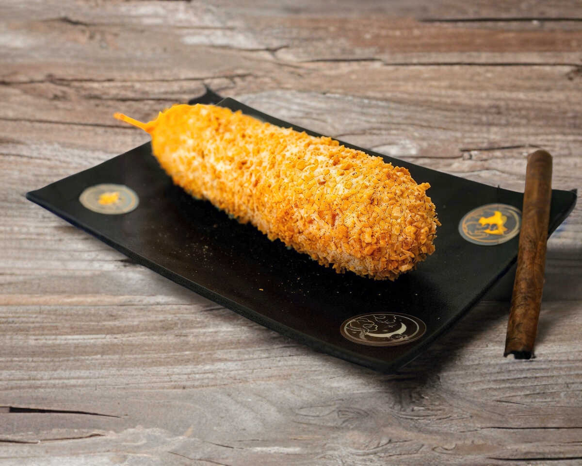 Salchicha jumbo envueltas en una masa crujiente sabor salsa negra.
